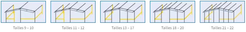 À partir de la taille 11, il y a deux barres-faîtières supplémentaires.