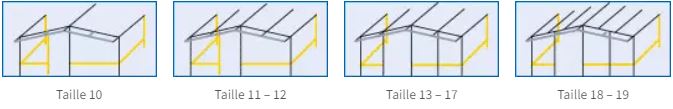 À partir de la taille 11, il y a deux barres-faîtières supplémentaires.